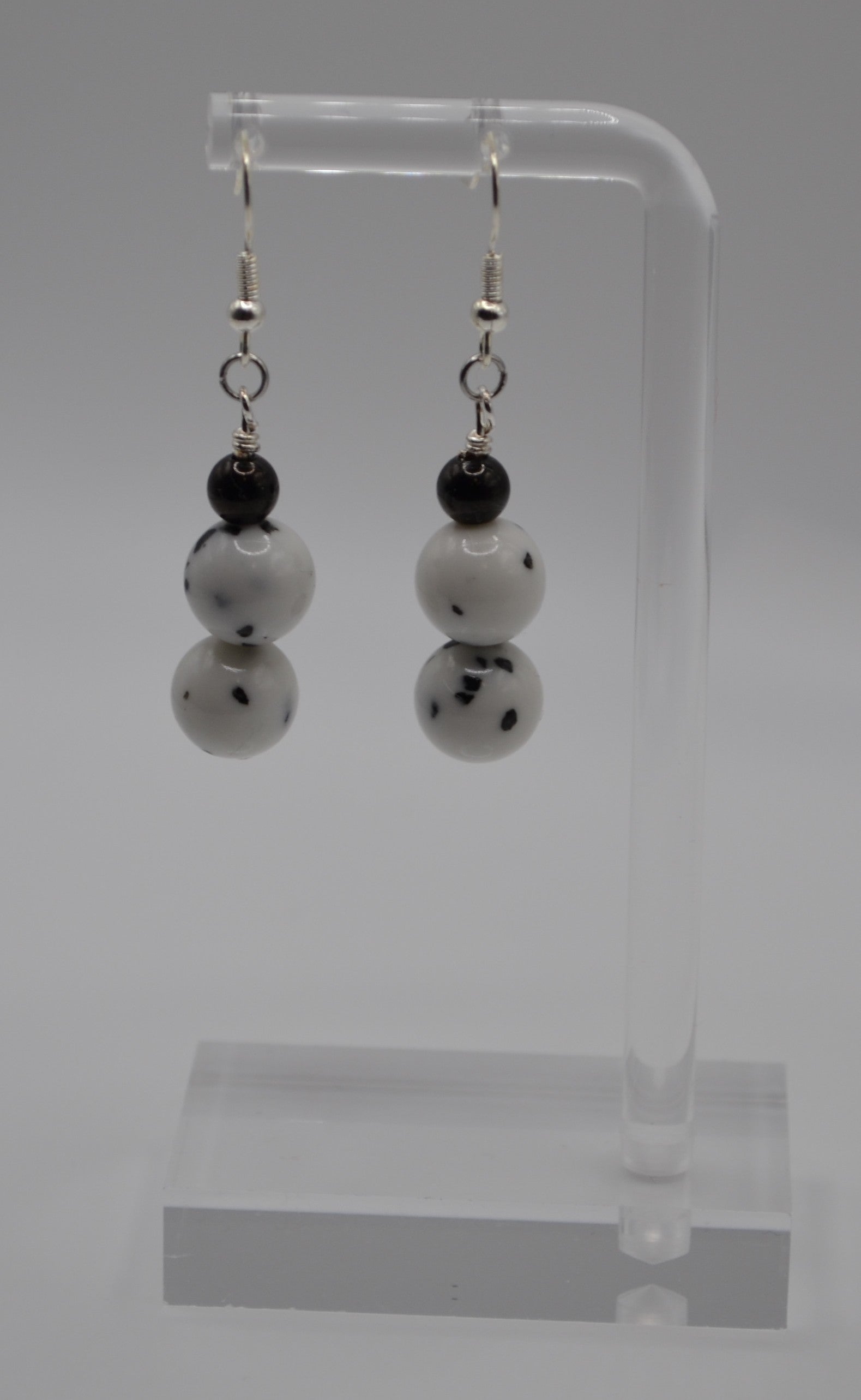 These are my new black ball dalmatian earrings. Which have been made with silver plated pins and fixings then the beads are 8mm dalmatian stone and silver stainless steel 6mm ball beads. Perfect gift for you dalmatian lovers or anyone who just loves the design :)