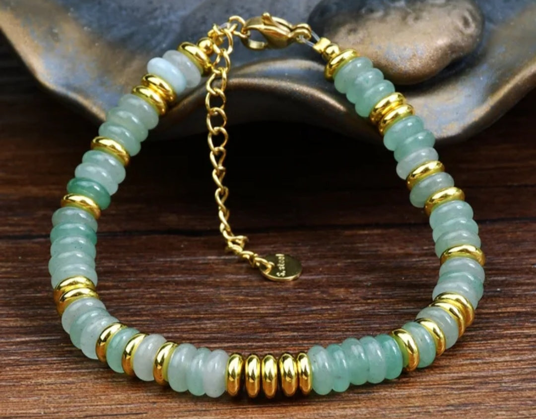 These are my bohemian stone bracelets made on beading thread with a gold plated stainless steel chain extension. Coming in a variety of 9 gemstone colours there truly is one for all. Just ensure to keep them out of water to keep there original look.
