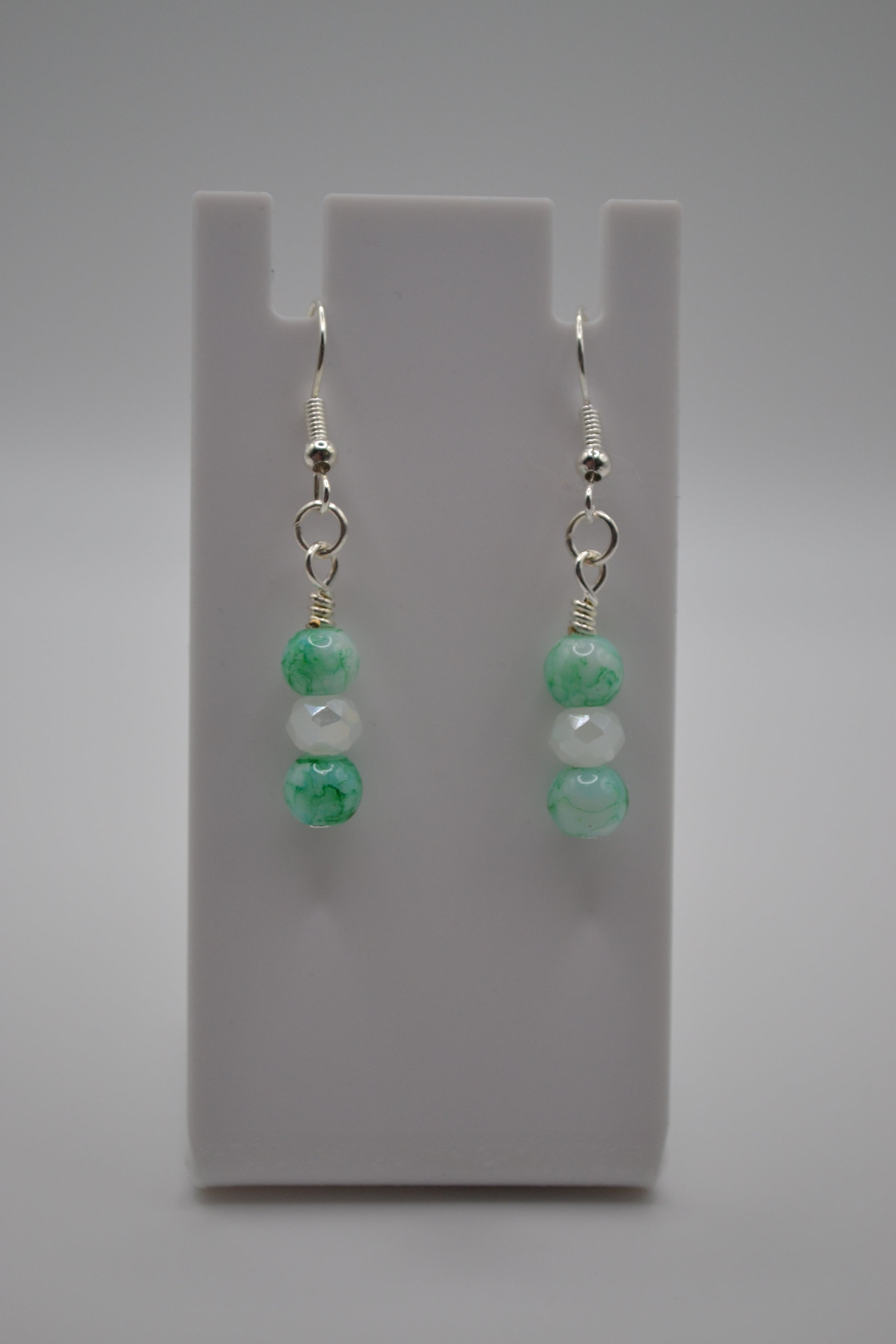These earrings are super sweet the combination of green and white together with sliver materials really compliment one another just ensure to make sure they stay pretty by keeping them out of water.