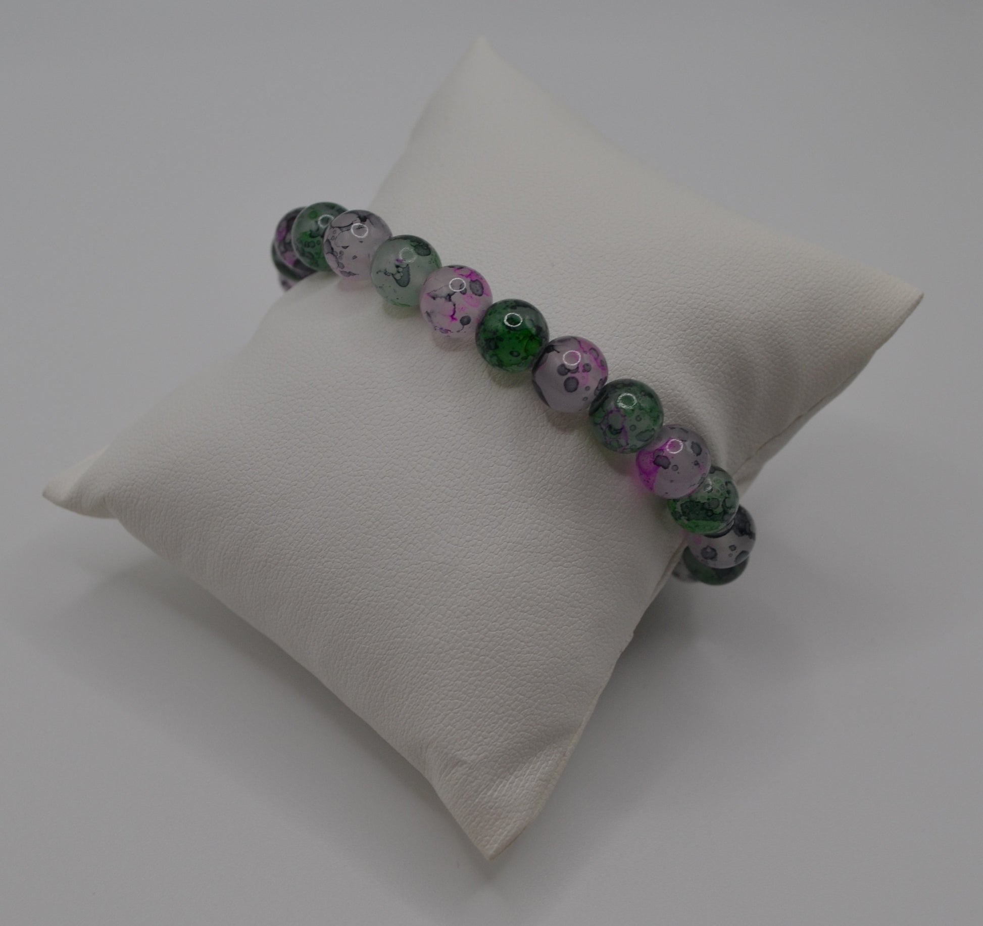 Can't go wrong with a little green can you this speckled bracelet is made with glass beads and on elastic so ensure to pick the right size for you so it's the perfect fit.
