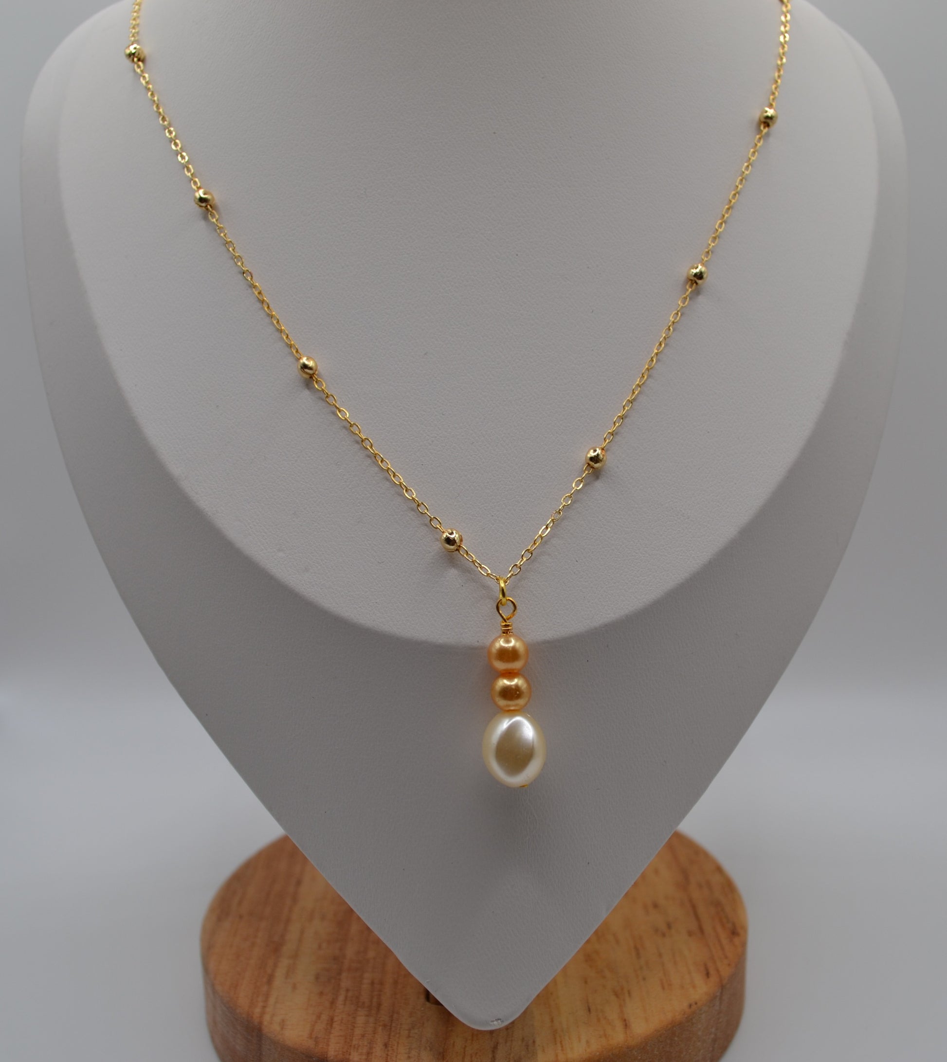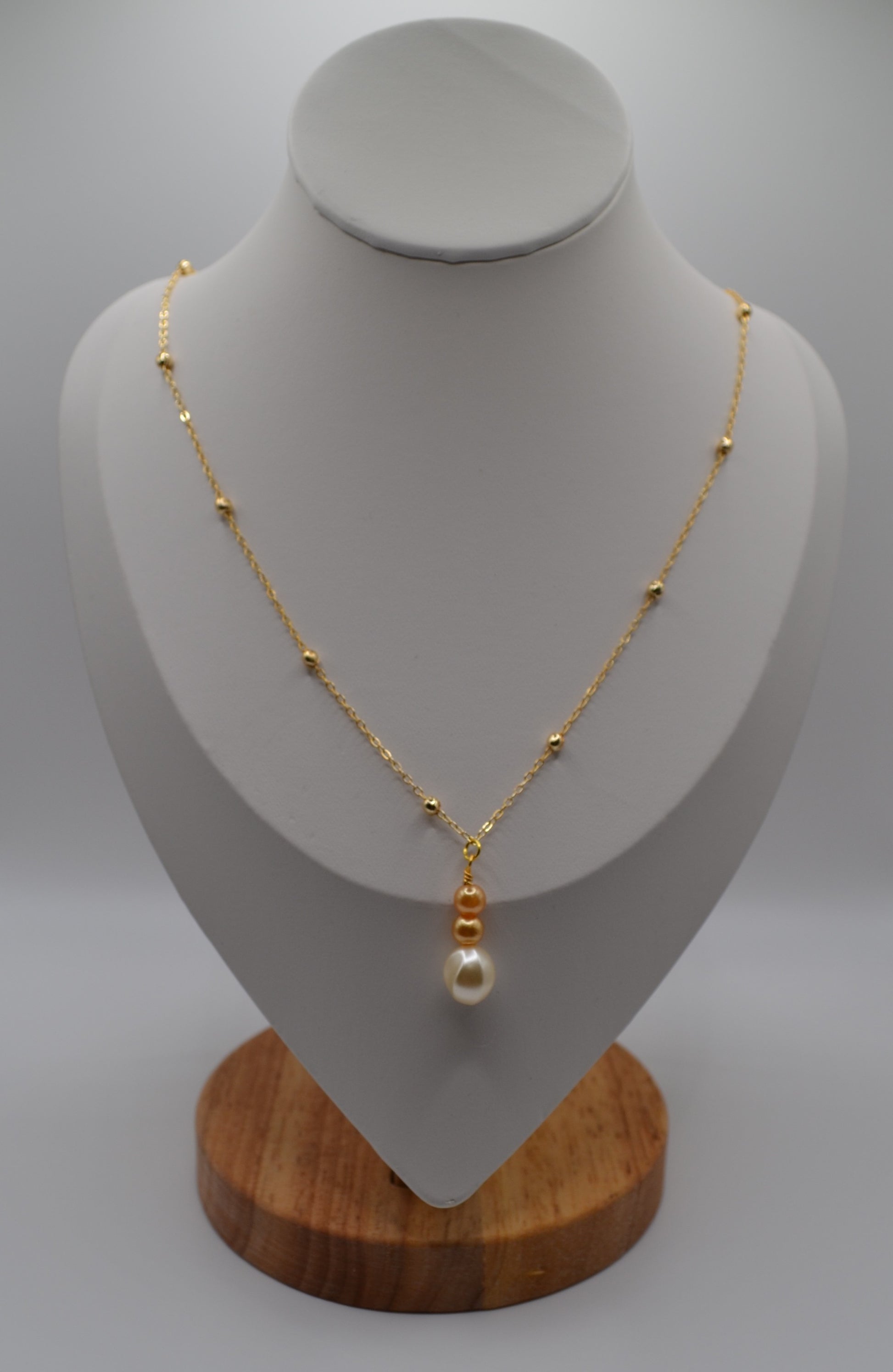 This is my new pearl and gold plated ball necklace coming in matching earrings also it makes a perfect set to gift or treat yourself too. Coming in a length 20" see our attached size guide within these images.
