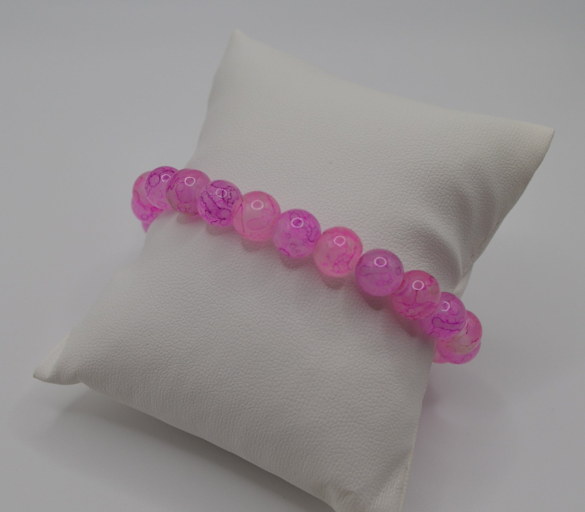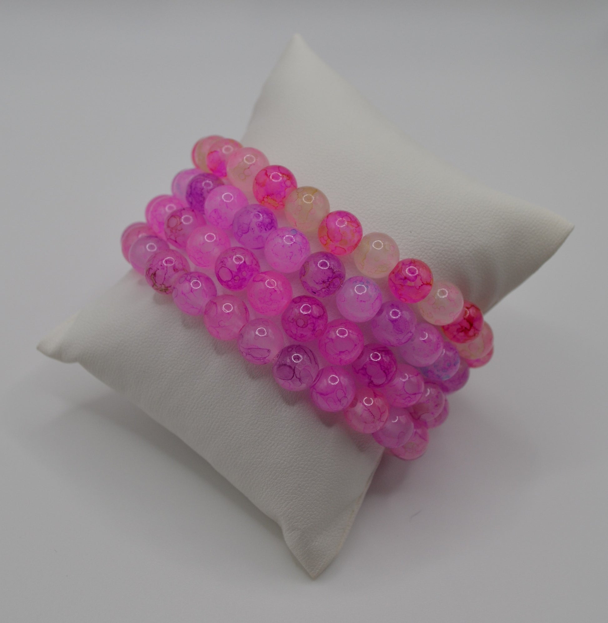 This speckled bracelet in pink is beautiful, made with glass beads and on elastic just ensure to let us know the size for you so it's the perfect fit.