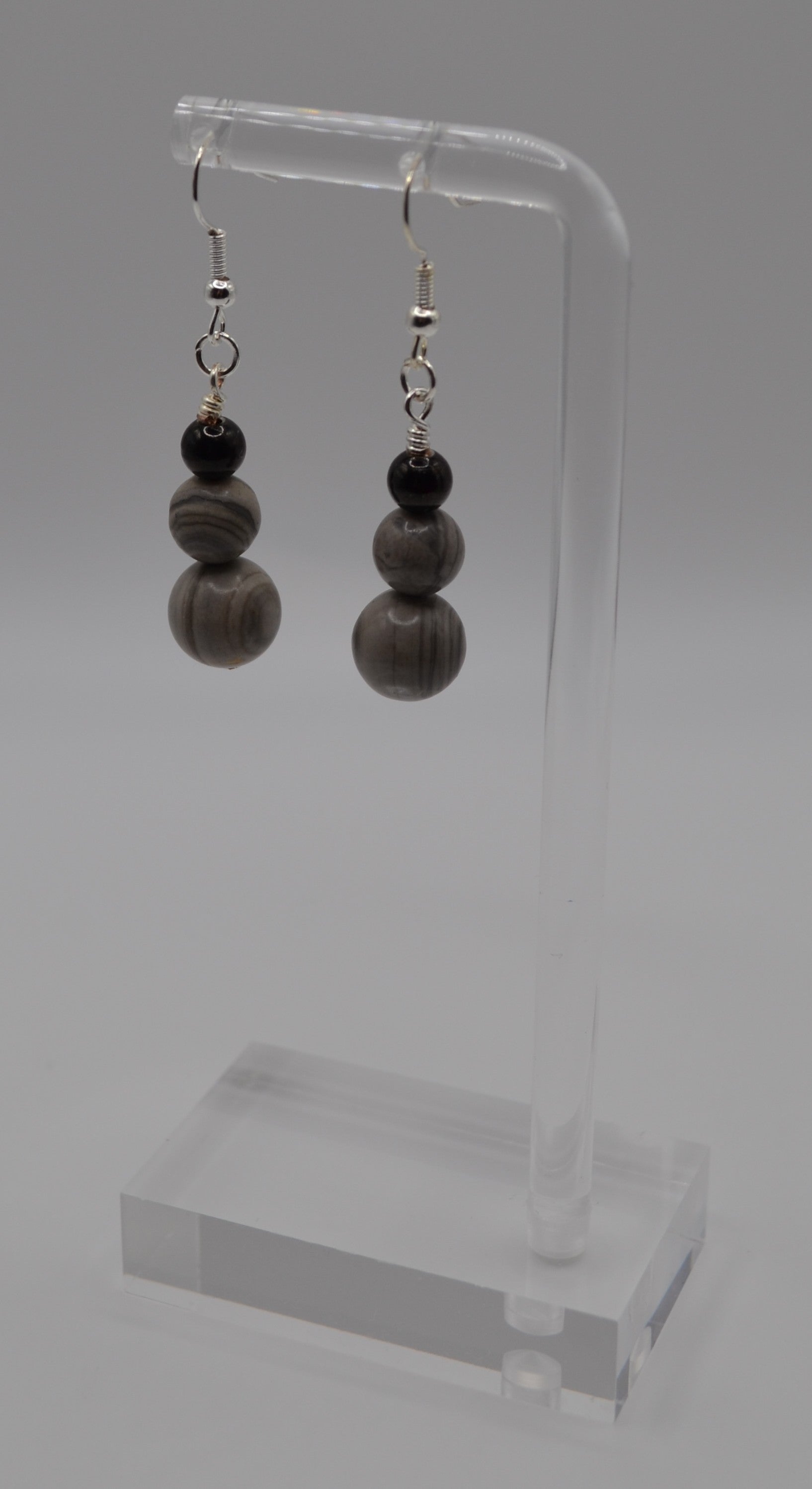 Another addition to my weimaraner range, made with my weimaraner looking beads natural gray wooden grain jasper beads and black stainless steel beads finished with all silver plated materials so do keep put of water. Perfect pair of earrings to represent your silver buddy or just as an a good addition to any jewellery collection.